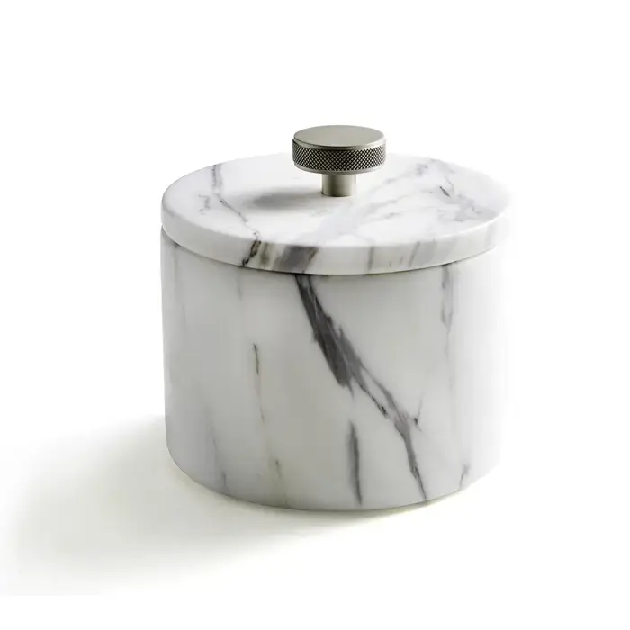 3SC Apuana 2.0 Контейнер с крышкой настольный d12хh8,5 см, цвет: мрамор White Statuario/никель сатинированный полированный