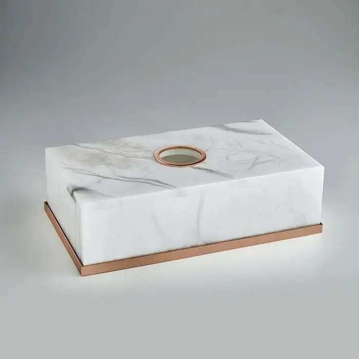 3SC Baster Round Контейнер для бумажных салфеток 26.5х7.5х15.5 см., настольный, цвет: алебастр/Warm Brushed Bronze PVD