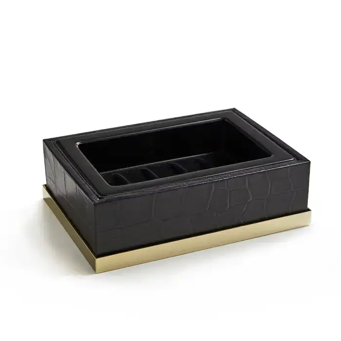 3SC Cocco Лоток универсальный, 28х15см, черная кожа, цвет золото Lucido CO66AGD