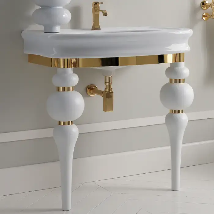 3SC Консоль Via Veneto 70х52хh96см, с раковиной и сиф., цвет белый матовый золото Lucido VV3070GD