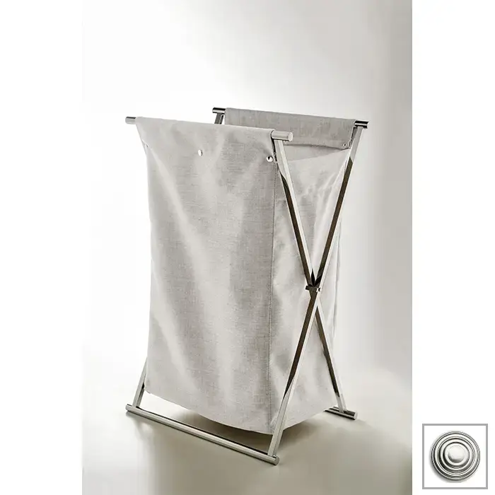 3SC Double Face Корзина для белья 50х80х36см., раскладная, цвет: белый хлопок/никель сатинированный полированный