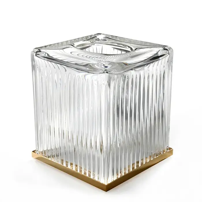 3SC Elegance Контейнер для бумажных салфеток настольный 13хh15х13 см, цвет: прозрачный хрусталь/латунь сатинированная матовая