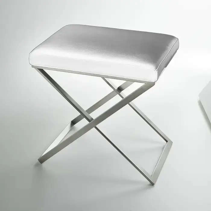 3SC Lino&Lone Стул с сиденьем из кожи со стежкой 50хh50х36 см, цвет: белая кожа/никель сатинированный матовый