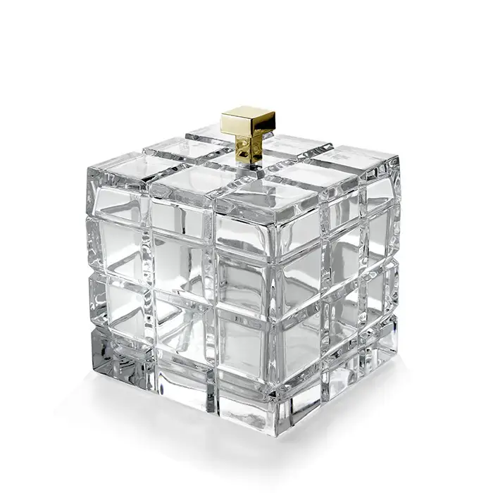 3SC Palace Баночка универсальная, 11x11xh13,5 см, с крышкой, настольная, цвет: прозрачный хрусталь/золото 24к. Lucido