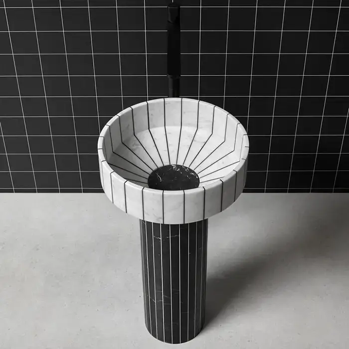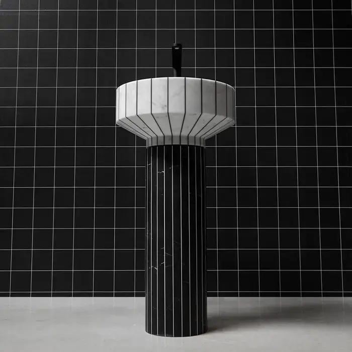 Antonio Lupi 024 Раковина 45х85 см, без отв., напольная, слив в пол, с сифоном, гибким шлангом и донным клапаном, пьедестал Nero Marquinia, цвет: Carrara