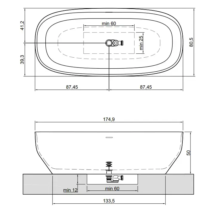 Antonio Lupi Ago Ванна отдельностоящая 175х80х50см, с нажимным донным клапаном, цвет: белый
