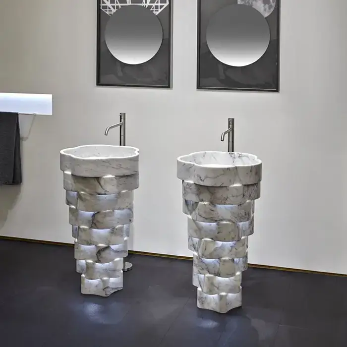 Antonio Lupi Intreccio Раковина 47x85 см, без отв., с LED подсветкой, с донным клапаном и сифоном, цвет: Marmo di Carrara