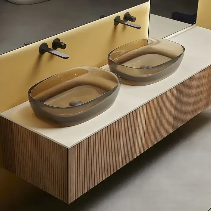 Antonio Lupi Senso Раковина 60х40х15см., накладная, без отв., без перелива, Cristalmood, цвет: Nebbia