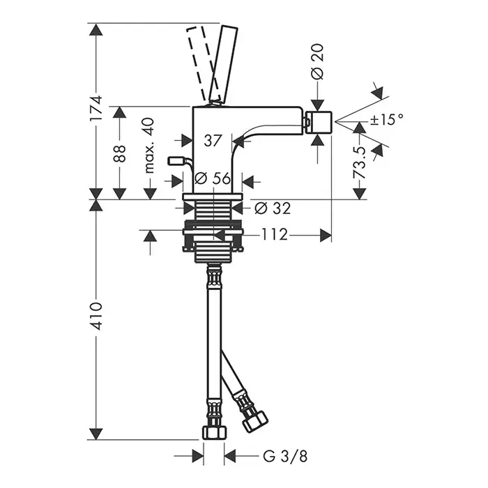 Axor Citterio Смеситель для биде, однорычажный, с донным клапаном, цвет: шлифованный никель 39210340