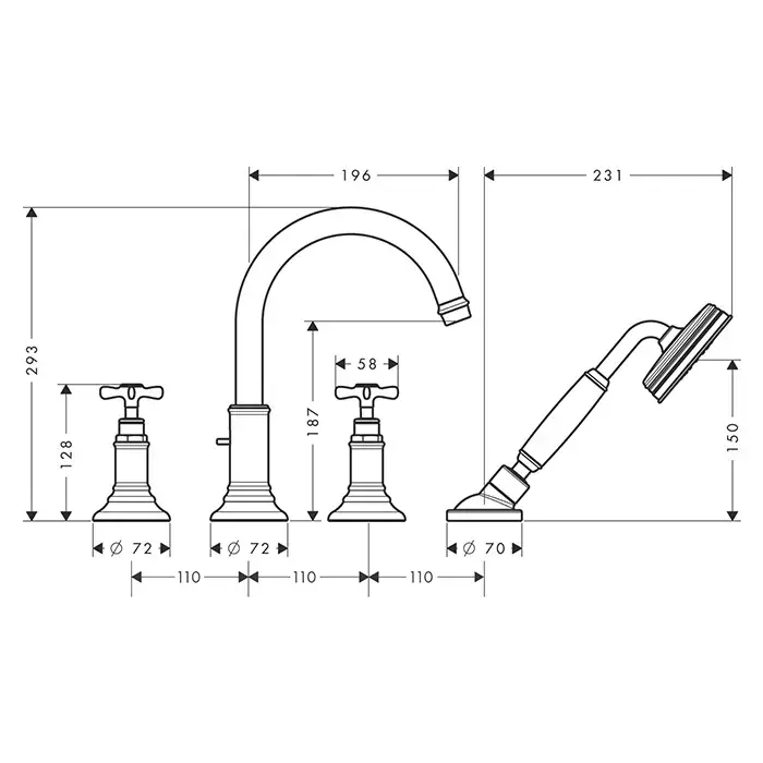 Axor Montreux Смеситель на борт ванны, с ручным душем, внешняя часть, цвет: полированное золото 16546990