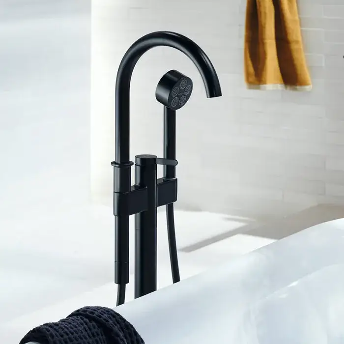 Axor One Смеситель для ванны, напольный, однорычажный, с ручным душем, цвет: матовый черный 48440670
