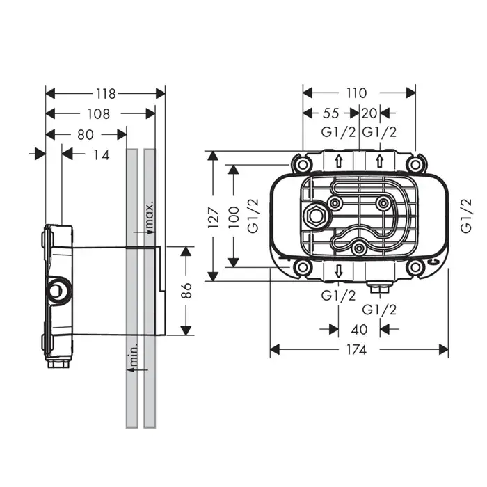 Axor Скрытая часть для запорного вентиля, керамическая, 40 л/мин 15974180