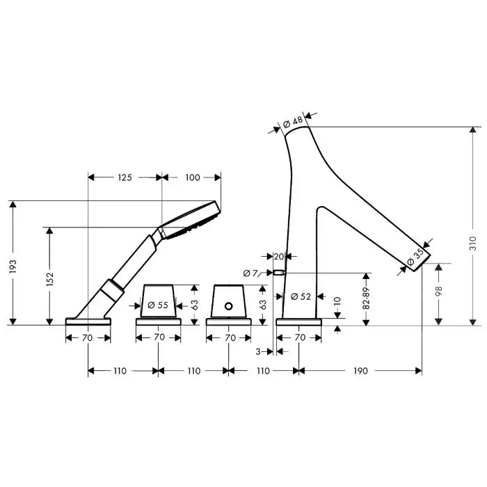 Axor Starck Organic Термостат на борт ванны, с ручным душем, внешняя часть, цвет: хром 12425000