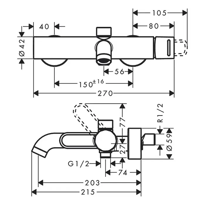 Axor Uno Смеситель для ванны с рукояткой-петлей, излив 20,3 см, цвет: хром 38421000