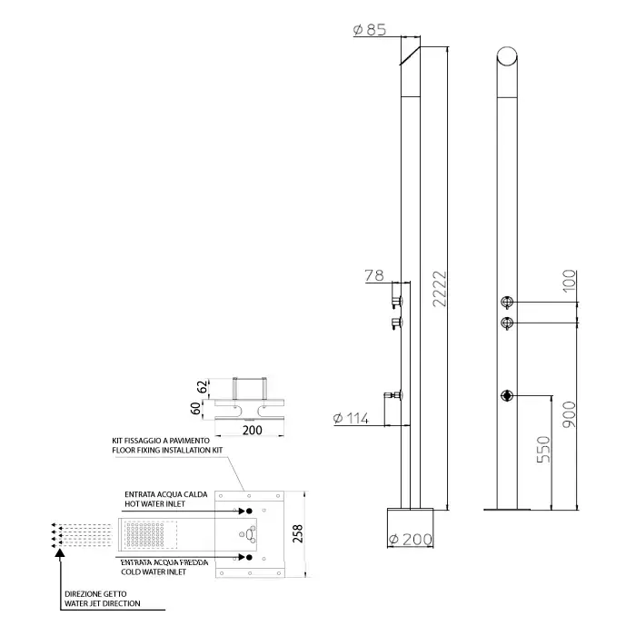 Bossini Pool Душевая колонна со смесителем и верхним душем, напольная, цвет: хром
