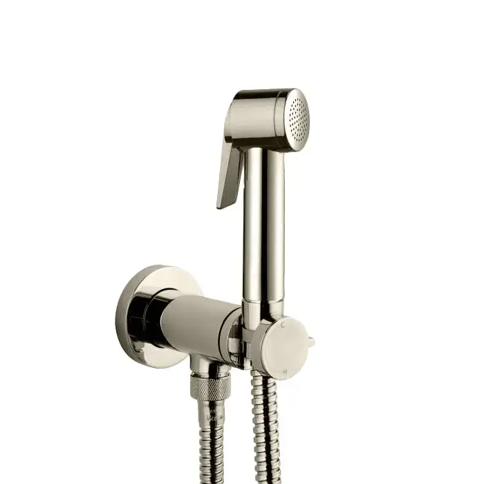 Bossini Paloma Brass Гигиенический душ с прогрессивным смесителем, лейка металлическая, шланг из латуни дв. фальцевания 1250мм, цвет: брашированный никель