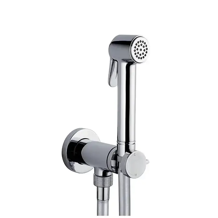 Bossini Cube Brass Гигиенический душ с прогрессивным смесителем, лейка металлическая, шланг металлический, цвет: хром