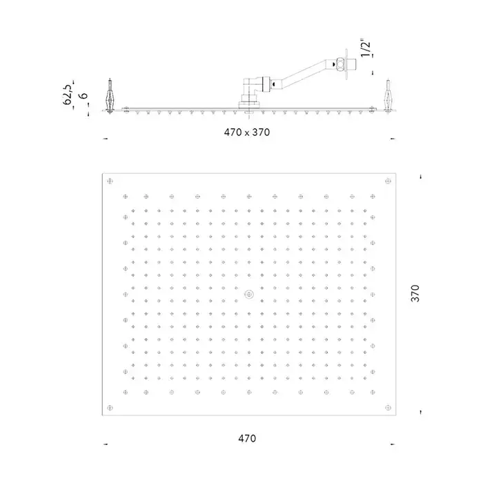 BOSSINI PARIS-RECTANGULAR Верхний душ 470 x 370 мм, FLAT, цвет: хром