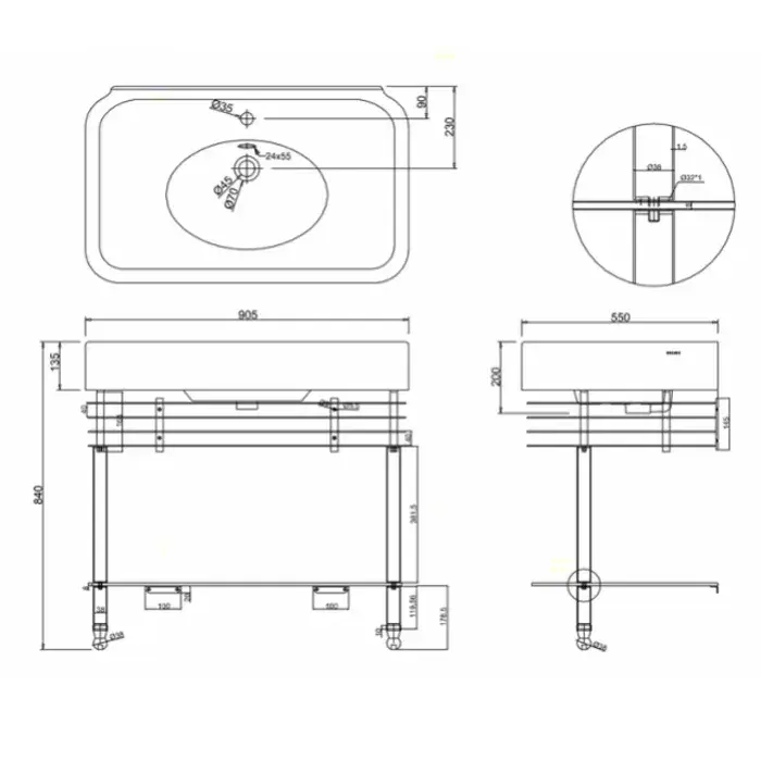 Burlington Arcade Подстолье со стеклянной полкой для раковины ARC900 90х55х70h см, цвет: хром глянец ARC23 CHR