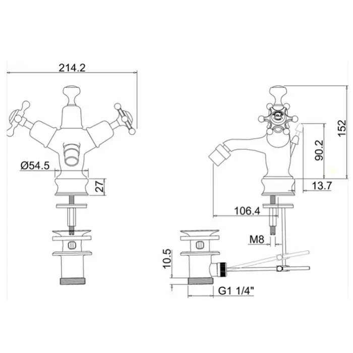 Burlington Birkenhead Смеситель для биде на 1 отверстие, с донным клапаном, цвет: хром/черный глянец BI13-QT BLA