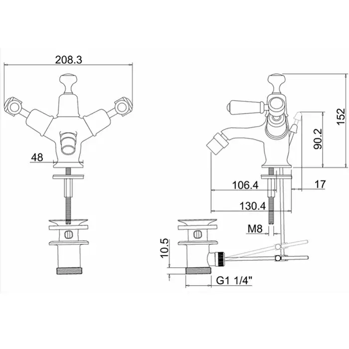 Burlington Bridge Смеситель для биде на 1 отверстие, с донным клапаном, цвет: хром/орех глянцевый KE13-QT WAL