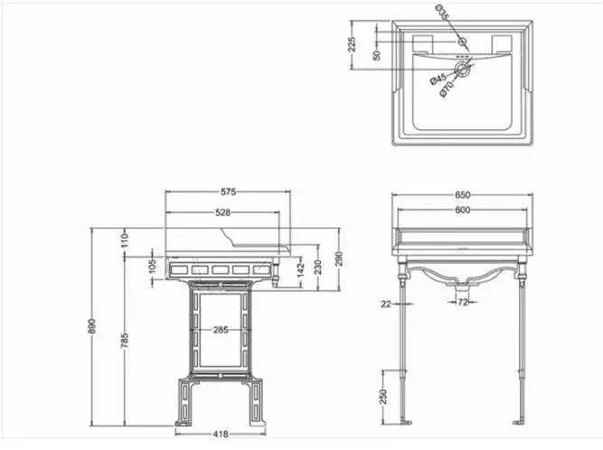 Burlington Classic Раковина подвесная 65х57,5 см, перелив, 3 отв. под смеситель, цвет: белый глянец B15 3TH