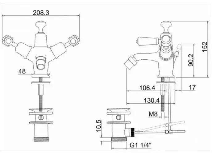 Burlington Classic Смеситель для биде на 1 отверстие, донный клапан, цвет: хром/белый глянец KE13-QT