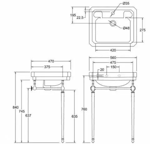 Burlington Edwardian Консоль под раковину B18 1TH, напольная 72х42,5х74,5h см, цвет: хром глянцевый T50 CHR