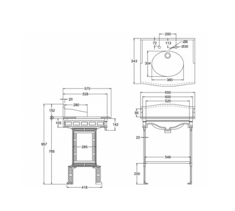 Burlington Georgian Консоль под раковину B15 1TH, напольная 53,8х50,3х78,5h см, цвет: хром глянцевый T49A CHR