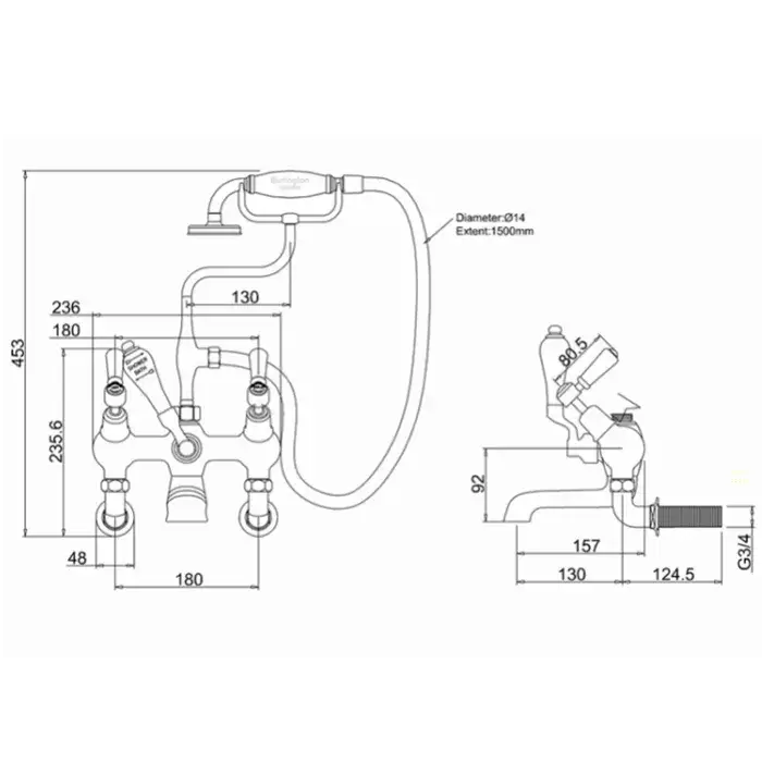 Burlington Kensington Смеситель для ванны с ручным душем и держателем, цвет: хром/белый глянец KE21-QT