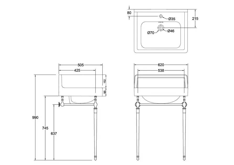 Burlington Консоль под раковину, напольная 53,8х42,5х74,5h см, цвет: шлифованный никель T23A BNKL
