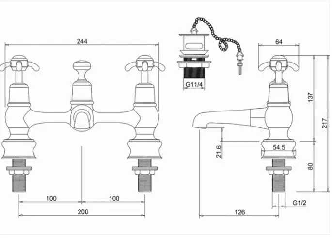 Burlington Regent Смеситель для раковины на 2 отв, излив 2,2h см, с пробкой, цвет: хром/белый глянец ANR10-QT
