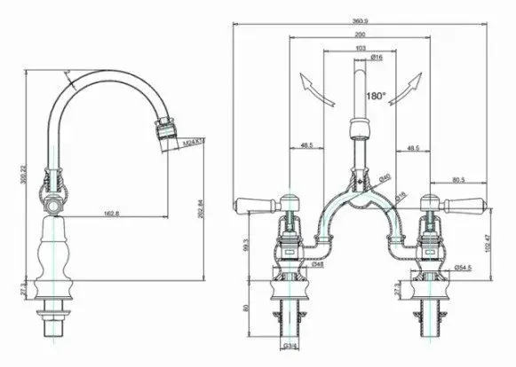 Burlington Regent Смеситель для раковины на 2 отверстия, излив 20h см, цвет: хром/белый глянец KER27-QT
