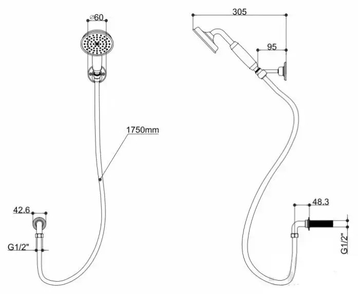 Burlington Riviera Ручной душ, шланг 175 см, держатель лейки, подключение, цвет: хром глянцевый RIV20 CHR