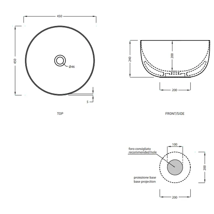 Cielo Era-Eco Раковина накладная 45xh24 см, круглая, цвет: глянцевый белый BAERA