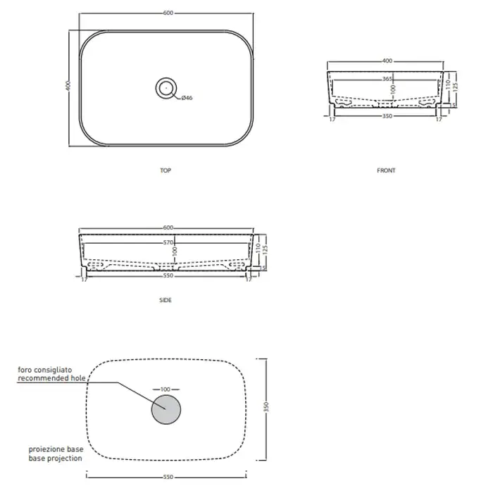 Cielo Shui Comfort Раковина накладная 60x43xh13 см, 1 отв, цвет: белый глянец SHCOLARF