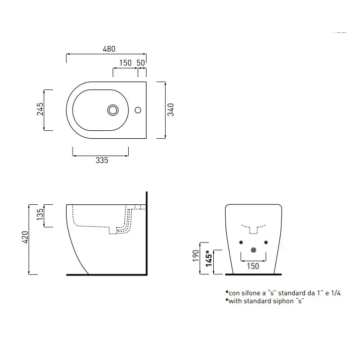 Cielo Smile Mini Биде напольное 34х48хh42 см, 1 отв, цвет: глянцевый белый SMBIDR