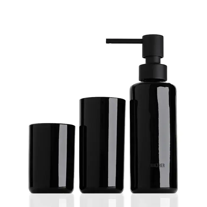 Decor Walther Universal Набор аксес. из стекла, настольный, два стаканчика и дозатор, цвет: черный 0940063