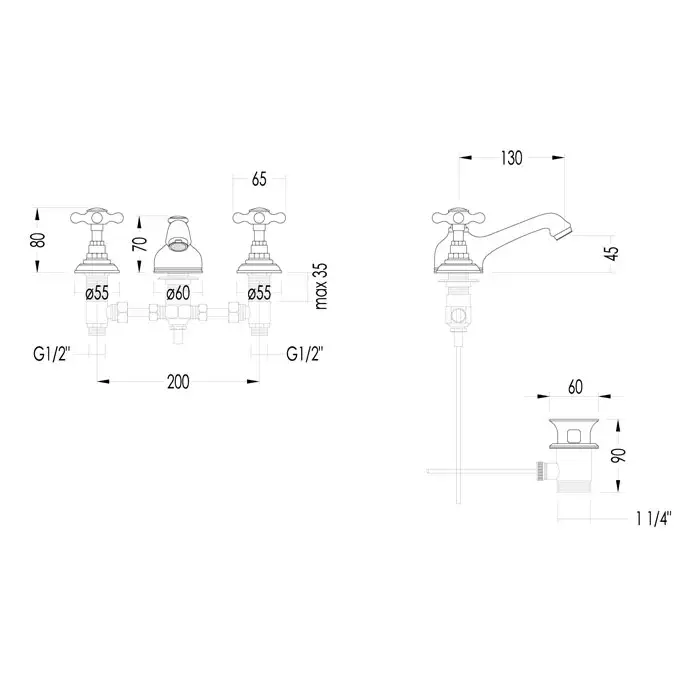 Devon&Devon Austin Смеситель для раковины на 3 отв., цвет: хром UTAU900CR