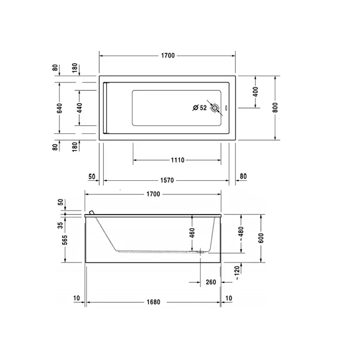 Duravit Starck Ванна акриловая прямоугольный вариант 170x80хh46 см, цвет белый 700336000000000