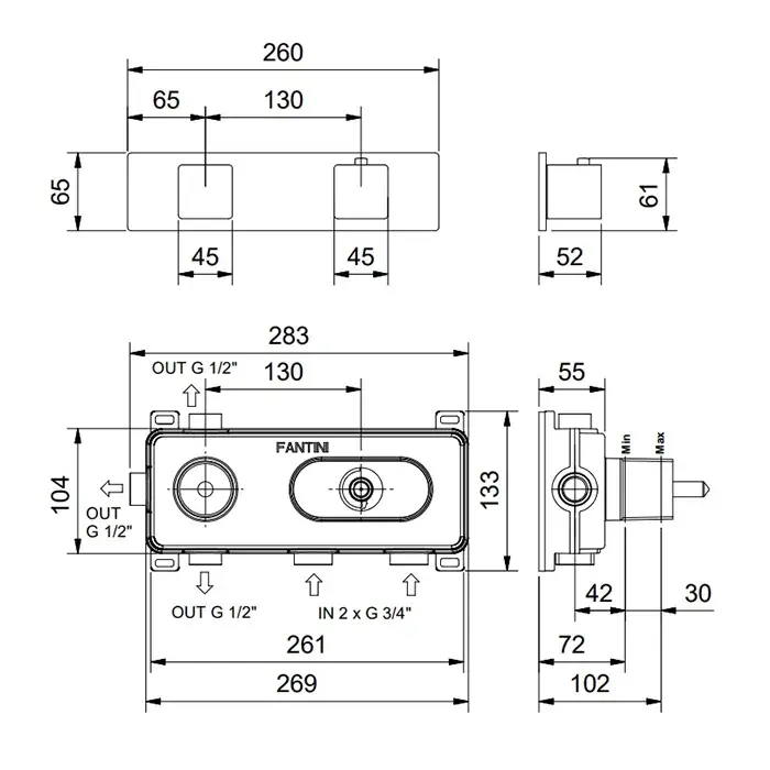 Fantini Mint Планка и соединения для простой установки термостатических смесителей 91 00 W043