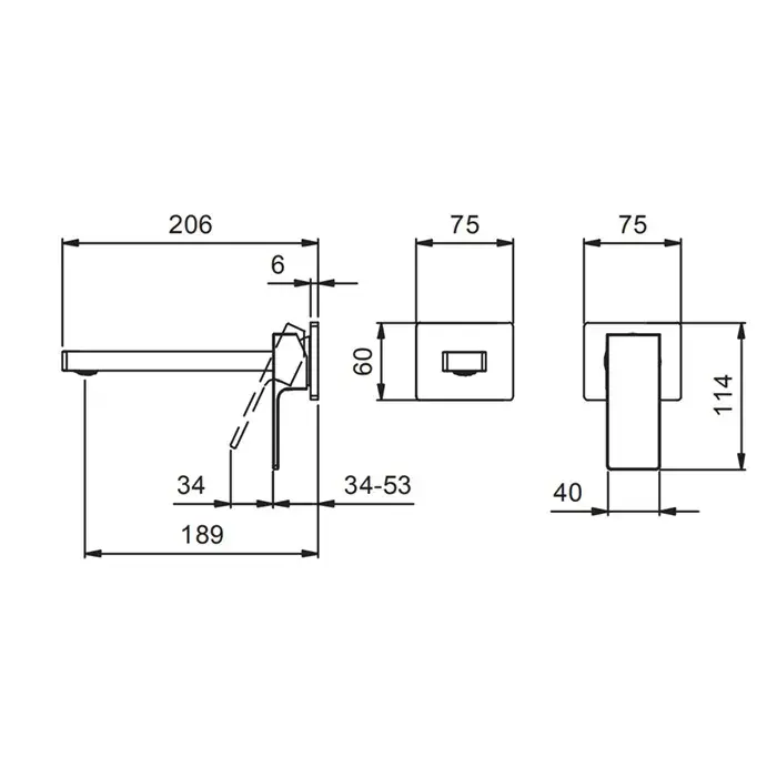 Fantini Mint Смеситель для раковины настенный, излив 14 см, цвет: черный матовый 34 13 F809B