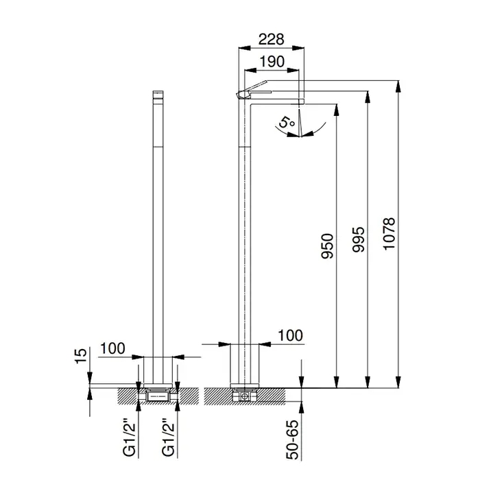 Fantini Mint Смеситель для раковины, напольный, внешняя часть, цвет: черный матовый 34 13 F036B