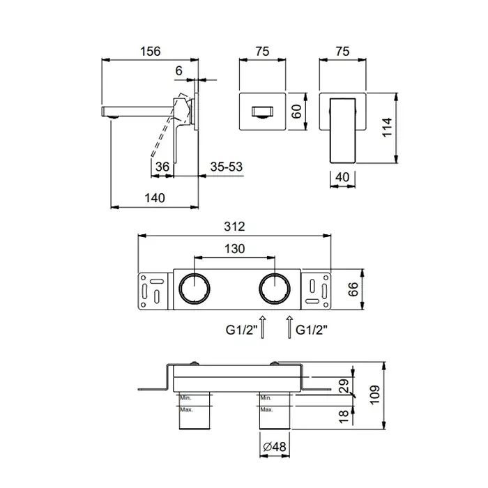 Fantini Mint Планка и соединения для простой установки термостатических смесителей 91 00 W043