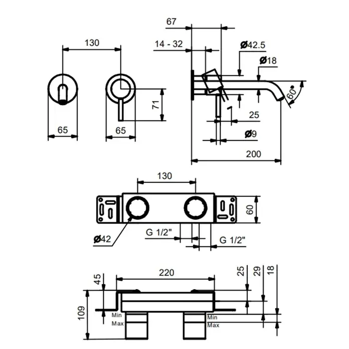 Fantini Nostromo Small Смеситель из стены для раковины, цвет: черный матовый 50 13 G913B