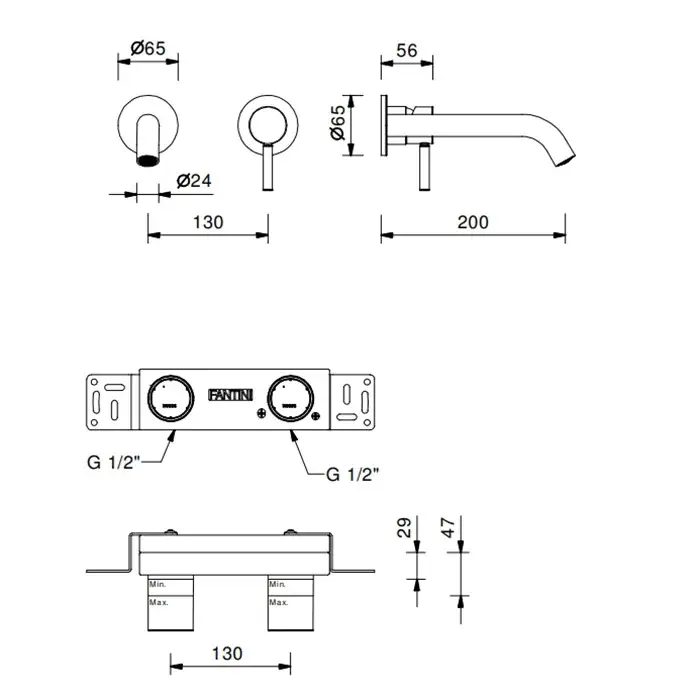 Fantini Nostromo Small Смеситель из стены для раковины, наружная часть, цвет: хром 50 02 G913B