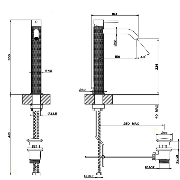 Gessi 316 Cesello Смеситель для раковины высокий с донным клапаном однорычажный, цвет: matte black 54403#299