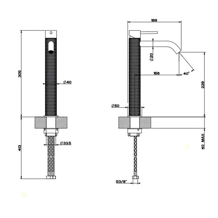 Gessi 316 Cesello Смеситель для раковины без донного клап. двухвент., цвет: black metal brushed PVD 54412#707