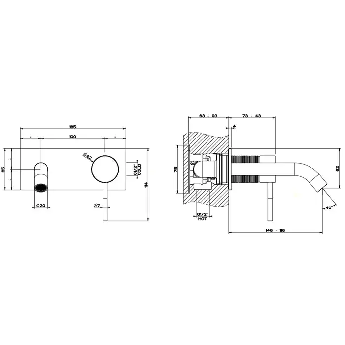 Gessi 316 Cesello Смеситель для раковины без донного клап. двухвент., цвет: black metal brushed PVD 54412#707