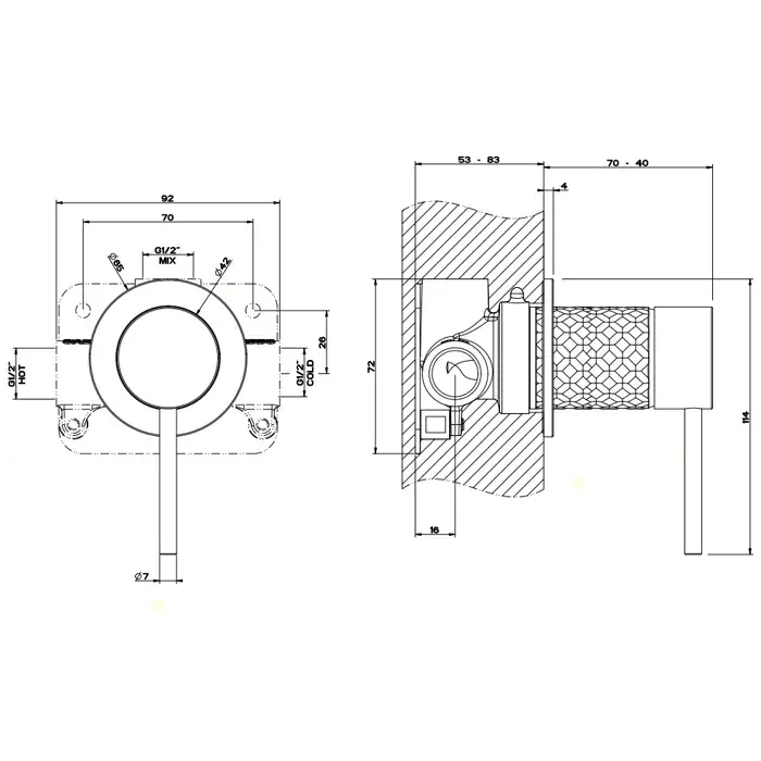 Gessi 316 Intreccio Смеситель для душа встраиваемый на 1 потребителя, внеш. часть, цвет: matte black 54119#299